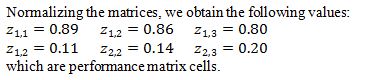 From the performance matrix Z we obtain vector ax containing the figures indicating the relative importance of the alternatives.