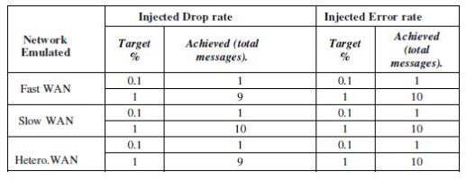 All the discussed issues above have been taken into account in order to produce a WAN Emulation for our fault injection method. As discussed in the previous section, the messages are intercepted at application level by using proxies, so at this level the complete message entities are captured and any particular part of the messages can be manipulated. In addition the network faults may be injected explicitly (dropped or corrupted messages). The proposed solution for choosing a reasonable time out period is tackled by testing the system under different real delay rate and drop rate scenarios, then monitoring the system in order to assign the best timeout period that can minimize the risk of confusing between the normal network delays and the message losses.