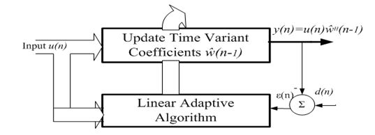 [1]. The estimator tries to update the filter coefficients (w(n)) by minimizing the error function, . The minimization procedure takes on the form of the minimization in the mean squares error (MSE) sense. Given the above parameters and, as shown in Figure 1 below,