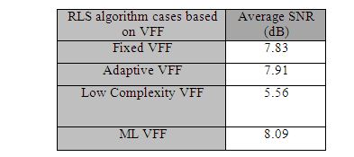 Table I. Comparison Between All Cases of RLS Algorithm with Average SNR in dB