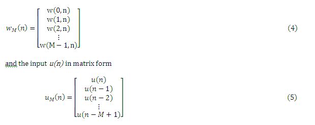If the filter coefficients w(n) are expressed in matrix form at time n as [2]