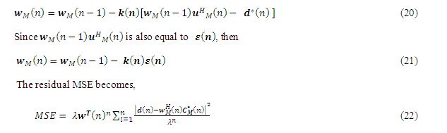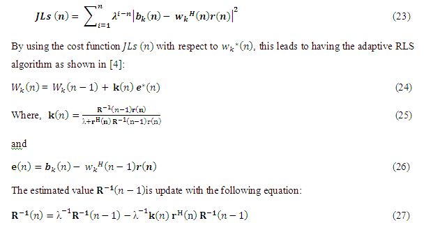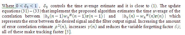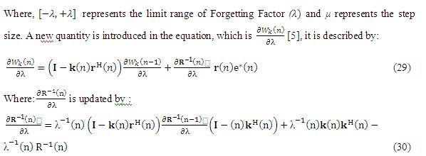Equations (24)-(30)give the implementation of the adaptive variable Forgetting Factor in (RLS) adaptive algorithm