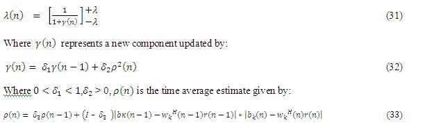 In [5] a proposed algorithm to adjust the low complexity of Forgetting Factor (λ) was presented by the following equation: