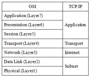 Table 6 shows the network layers of OSI and TCP/IP reference models. At TCP model, session and presentation layers are not exist and their works will carry out by transport and application layers respectively. Although both reference models have the application layer, but their services are different.