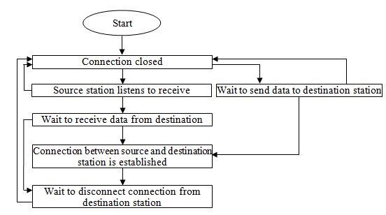 To implement and calculate simulation results, instead of telecommunication switches, client computers are used to simulate them, and server computer simulate control switch to make a required instructions for controlling telecommunication switches. Simulation of client-server network, functional test program for send/receive, connect/disconnect and other functions of TCP/IP protocol are programmed with visual C++ software [19]. According to received information from application layer, connection conditions such as establishment and release will carry out. Also clean and unaccepted data sending and different states of TCP were implemented in the simulation software [20].