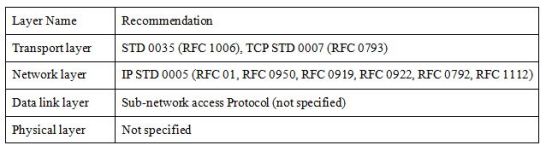 Table 1. Internet profile protocols in each layer with their recommendations