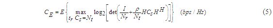 Where Cs is the covariance matrix of transmitted signal vector s and I is the identity matrix with dimension Nr.ρ is the average signal to noise ratio. By definition, the channel capacity is the maximum of the mutual information where the maximization is taken over all possible covariance matrixes Cs and hence the deterministic MIMO channel capacity can be written as: