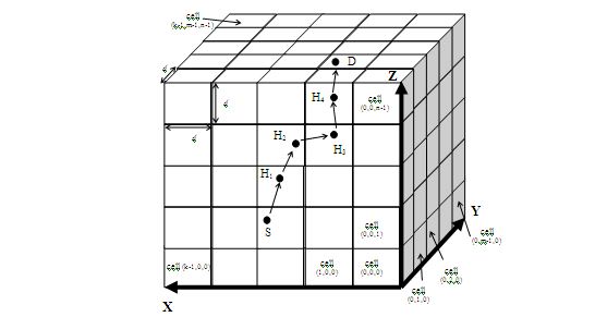 Figure 1. Cell-by-Cell Routing in a 3D Grid