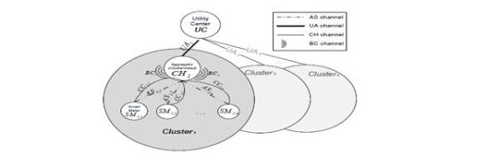 Communication standards and technology to be used in the future smart grid and AMI is an ongoing debate. There are various communication options proposed for the smart grid including fiber optics, copper-wire line, power line communications, and miscellaneous wireless technologies. We consider the widely used wireless architecture for the deployment of SGN [8]. The wireless communication between SMs, which are organized into groups called clusters, and the aggregator or Cluster Head (CH) uses IEEE 802.15.4 or Zigbee due to characteristics such as low power, short delay, self-organization, scalability, and high security [8]. The aggregated data will be forwarded from the CH to the UC using a dedicated point-to-point link.