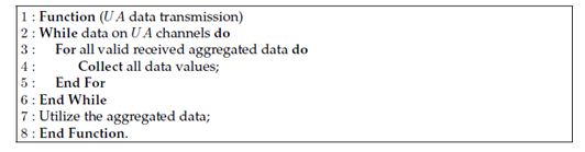 CH will receive a signal including all the bits transmitted by all the smart meters. The received signal will be decoded by CH using all valid OCSs that it initially assigned to theSMs. Since CH maintains a table of assigned OCSs (in the same order that was agreed in the initialization phase) and IDs to every single SM in the network, it is able to decode thedata by using appropriate OCS for every bit. Hence, after decoding the received signal,CH has all individual (perturbed) data sent by all the SMs in the cluster. Then, it adds allthe received data and sends the aggregate value to the UC on the point-to-point UA link.It should be noted again, the perturbation noise will be cancelled out upon addition. Ourproposed secure aggregation technique is outlined in protocols 4, 5 and 6. (Even if data in transit could be decoded, it would still not be useful to the adversary as they are alreadyperturbed.)