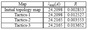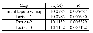 Table 5. λmax(A) and R of Initial topology and each Tactics (Country-C)