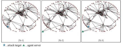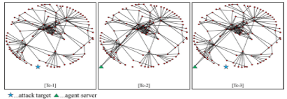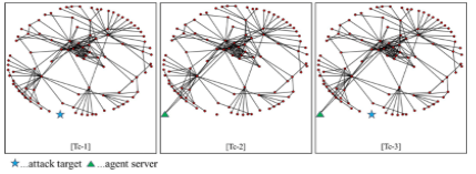 In Step-3, we take the method shown in section 3.2. The details of Step-4 and Step-5 are shown in section 5. In this paper, we estimate computational complexity as the number of calculation of Eigen values. So, the computational complexity of Step-4 is determined by the number of total nodes (N) in the malicious topology map, the number of attack target nodes (n), the number of agent nodes (m) and the number of links from each agent node (l), as follows.