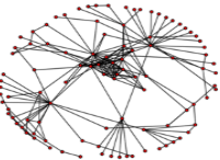Using the estimation method shown in section 3.2 for the resultants of traceroute, we have the malicious topology map of 2,119 nodes with 3,819 links as shown in Figure 4. But this topology map is too large for our computer environment to execute the proposal method. Therefore, we limited the number of nodes to 100 and focused on the nodes in the metropolitan area using the information of IP locator and WHOIS database. As the results, our target malicious topology map of 100 nodes with 187 links is derived as Figure 5.