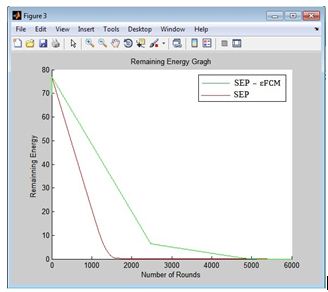 In Figure 6 we find that, after 4985 round run, the node in SEP died out and 5150 SEP_ εFCM nodes. Proposed protocol is higher 3.3% SEP. The result shows that the Remaining energy of the SEP_ εFCM matching protocol is greater than that of the SEP protocol. The results of the SEP_ εFCM combination protocol have improved the residual energy of the SEP protocol