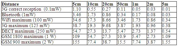 – for WiFi and microwaves oven: 61 V/m,