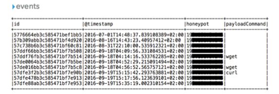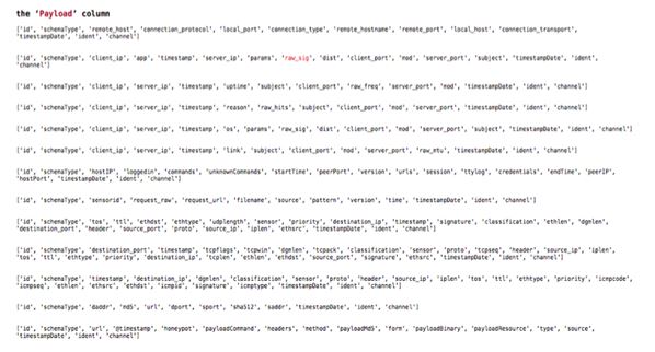 DataFrame[id: string, @timestamp: string, honeypot: string, payloadCommand: string]