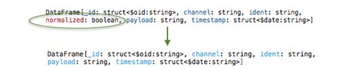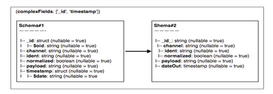 Fig. 3.0: Transforming complex fields (i) – attributes _id and timestamp are of the datatype struct