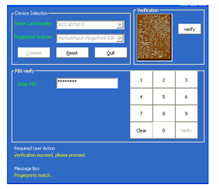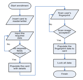 The proposed design uses a maximum of 8 characters, numbers or mix of both PIN and fingerprint as verification factors of the authentication process. ACOS smartcards and AET60 BioCARDKey development kit were used in the proposed design. In the verification part, the users have to submit the correct PIN DES encrypted current session key to get access to the next level. Users have 3 successful attempts to enter the correct PIN, else the cards will be locked and render it to useless. Lastly, Authors use the fingerprint as the biometric identifiers as it takes shortest enrollment time. The proposed design involves two phases namely the enrollment phase and verification phase. Each of the phases is briefly described below.