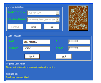 Enrollment – Prior to an individual being identified or verified by a biometric device, the enrollment process must be completed. The objective of this enrollment process is to create a profile of the user. The process consists of the following two steps. The screenshots of the prototype are shown in figure also shown in figure 3: