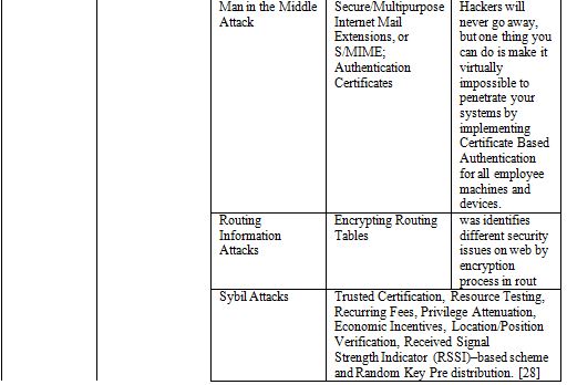 The Network Layer: The layer that is most prone to attacks is the network layer as it aggregates data from existing infrastructures and it transmits that data to other layers. The primary security issues are related to the authentication and integrity of data that is being transmitted [9].