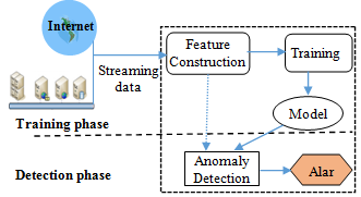 In the past years, several different techniques have been used in anomaly-based NIDS [7] such as statistical-based, knowledge-based, and machine learning-based. Almost all works considered anomaly detection as a classification problem that builds a model of normal network behaviors to detect new patterns that significantly deviate from the model. However, they do not take into account the previous, recent events to learn long-term dependency and context in the network traffic. Thus, challenges need to be scrutinized to improve performance and make suitable solutions with real network data characters. In general terms all of A-NIDS approaches consist of the following basic stages as shown in Figure1 [8]. A-NIDS observes changes in data stream that are collected from network traffic or host activities by building a profile of the system which is being monitored. The profile is generated over a period of time, so network traffic is considered as time series data. Analyzing network traffic based on time series has an advantage of exploiting the relationship between the packets in the network traffic and observing trends of behaving over a period of time. Subsequently, the temporal structures from network traffic are learned to extract features and they are used to build intrusion detection model.