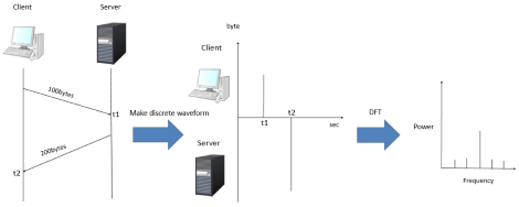 In the followings, we define session the total communication set between one client and servers. Our method has the assumption that the behavior of almost ordinary session seems random because the demands of the user are various. On the other hand, since malicious sessions have a certain purpose, their behavior will have some trends. These differences appear in the spectrum analysis of time changes of payload size in the session. Main procedure is as follows (Figure 1).