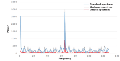 The standard spectrum in Step-3, is defined using only ordinary sessions which could be confirmed certainly. The derivation of ordinary spectrum is the same procedure shown above and we define the standard spectrum as the average of them. Figure 2 shows the resultant of Step-2. Only from the figure, we can easily judge ordinal or malicious comparing with the standard spectrum.