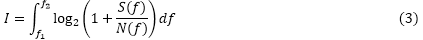 Note that our derived spectrums do not assume AWGN (Additive White Gaussian Noise) and they are independent spectra each other. Therefore, we cannot use Shannon-Hartley theorem directly. However, from following reasons, we propose a quantification method applying modified Shannon-Hartley theorem.