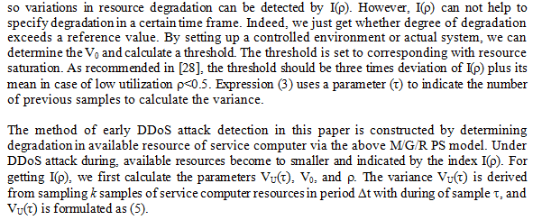 As presented in [28], the M/G/R PS model does not allow to direct calculating degradation D(R, ). Thus, relationship between utilization variance and degradation of performance was formulated for detecting symptom of degradation in performance easily. It switches to calculate index of degradation I( ) by expression(3)