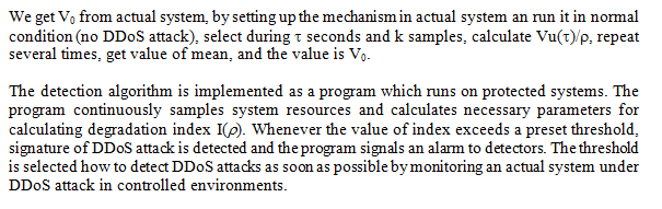 Other entropy-based mechanisms, such as [19],[20],[21], packet headers are represented as independent information symbols with unique probability of occurrence. It based on calculating entropy of stochastic request packets in a period of time. According to the algorithms, deviations of two values of entropy from two consecutive calculations are compared with a preset threshold. Whenever the threshold is exceeded, the system was under a DDoS attack.