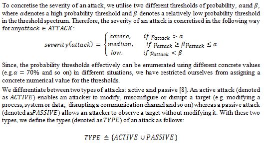 Next, we explore a few works which focus on modelling (mathematically or analytically) different threats, security attacks and other related issues. A formal way for modelling information security attacks has been presented in [13]. The model utilises attack trees to represent a security attack. This attack tree is then used to identify attack patterns. The authors argue that modelling based on attack trees and attack patterns will be helpful to identify common yet recurring attack traits which could be utilised to mitigate such attacks.