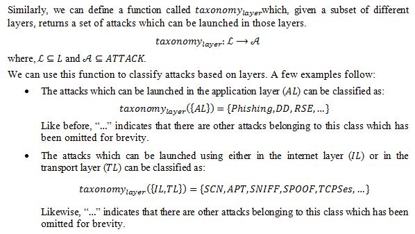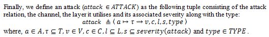 There are other works, as presented in [16, 17, 18, 19], which discuss and present a threat model in lifelogging, mathematical representation of identity and trust issues. Even though they are not strictly related to the scope of current paper, we have drawn motivations on how to model an attack from these works. In essence, there is not any work presenting a comprehensive model of a cyberattack. To the best of our knowledge, this article presents the first attempt to model a cyberattack comprehensively by encoding its different properties