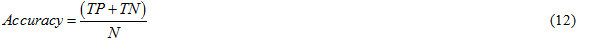 Where TP is the True Positive, TN is the True Negative, and N is the size of samples data.To compare the classification accuracy of our approach, we conduct multiple experiments of this work including run the proposed approach (HC-RBFPSO) on the training data and test data for a different number of neurons, after that we compare our results with other previous works.