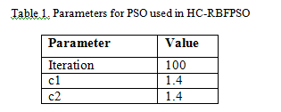 The proposed approach HC-RBFPSO is experimented using MATLAB 2012 under Windows 7 with i5-3210M CPU 2.5GHz, 4GB RAM memory.