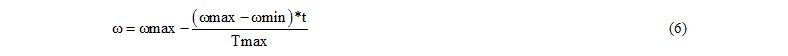 It should be noted that inertia weight ω in PSO was first introduced by Shi and Eberhart [30] in order to control the search speed and make particles converge to local minima quickly. Inertia weight ω often have restricted between two numbers during a run. Here in this work, we calculate the inertia weight by using equation 6.