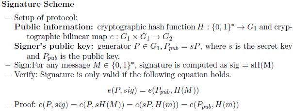 Our work is more related to the cryptographic techniques proposed for MANETs by Herranz et al. [18]. They proposed a fully self managed MANET and the ways to authenticate communication among the nodes. Our paper proposes the node au-thentication in their set up using BLS signature proposed by Boneh et al.[10]. Our proposal reduces the size of keys used as it uses the bilinear pairing. This scenario is much suitable for MANET because its nodes are mostly resource constraint devices and they can not a ord the heavy computational overhead required by larger keys.