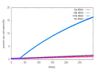 Figure 8. System CPU utilization (%), constant rate attack traffic