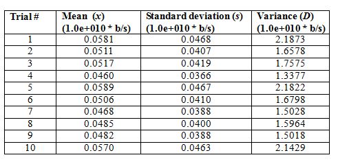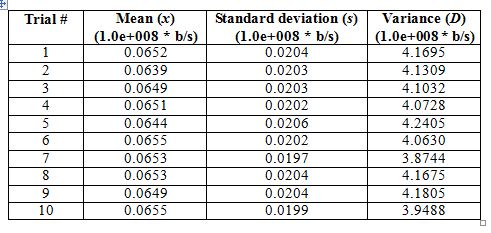 Table 7. Throughput statistics of randomized attack traffic on 10 trials