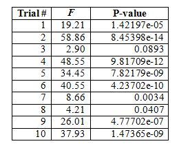 where n is total number of observations, is the overall mean of all observations, and and are the mean and the number of observations for the jth group, respectively. We assume the level of significance (a) is 0.05. If the P-value computed from the samples is less than the level of significance, a, we have evidence against the null hypothesis. That is, we reject the null hypothesis and say that the result is statistically significant.