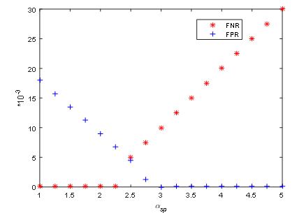 Figure 13(a). FNR and FPR for the counter threshold of system CPU utilization (αp)