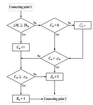 We further check whether DMt reaches incremental memory utilization threshold (Thm), a value set by experienced operator to avoid memory exhaustion by extremely high traffic volume. If so, the counter of incremental memory utilization, Cm, is incremented by 1. Otherwise, Cm is decreased by 1 until it reaches 0. We use a counter, αm, to examine the continuity of potential attack. When Cm increases up to αm, memory utilization enters warning state. The Boolean variable, Bm, is set to be 1. When Cm decreases down below αm, Bm is set to be 0. Figure 2 represents the flowchart of memory utilization identification.
