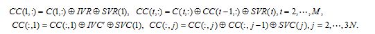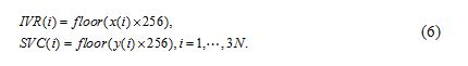 Step 3. Generate two chaotic sequences by the generalized Arnold map with initial values , then two row sequences SVC and IVR with length will be generated by