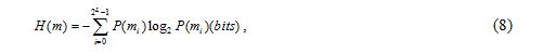 (iii) Information entropy analysis. Information entropy is one of the criteria to evaluate the randomness and the unpredictability of an information source. The entropy of a message source m is defined by