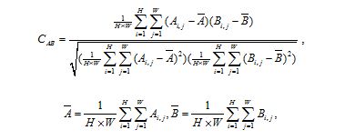 where A represents one of the three channels of plain-image, B represents one of the three channels of cipher-image. and are the mean value of the two-dimension matrix A and B