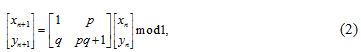 Step 1. For an given generalized Arnold map with parameter and initial value , we modulate by iterating this generalized Arnold map for 100 times to avoid the harmful effect of transitional process.