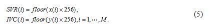 Step 2. Generate two chaotic sequences by the generalized Arnold map, then two row sequence SVR and IVC with length will be generated by