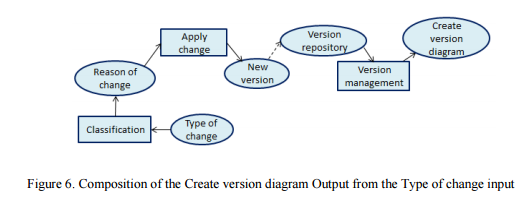Using information from the service composition we assume that given a service request the model will receive Type of change input data and produce Create version diagram output data.