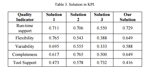 Run-time of our solution was more than both S1 and S2. This improvement is due to the use of service-oriented approach. Also, the flexibility in our solution was better than the solutions in Table 2 but only better than S2 and S3 from Table 3. As a result we can conclude that this indicator is better than S2 and S3; however, we can’t conclude it is better than S1. Variability of our solution is better than S2 and S3 but is worse than S1. Completeness of our solution is better than S1 and S3 but we not S2. Finally, tool support in our approach is worse than S1 but approximately the same as S2 and S3. According to the quality attribute results obtained in this study the effect of the service-oriented approach produced an improvement in the configuration of software architecture.