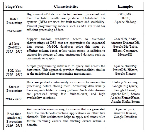 Table 1, Evolution of the Big Data from batch to real-time analytics processing [70]![]()