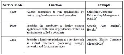 Table 2, Categorization of Cloud Service Models and Features